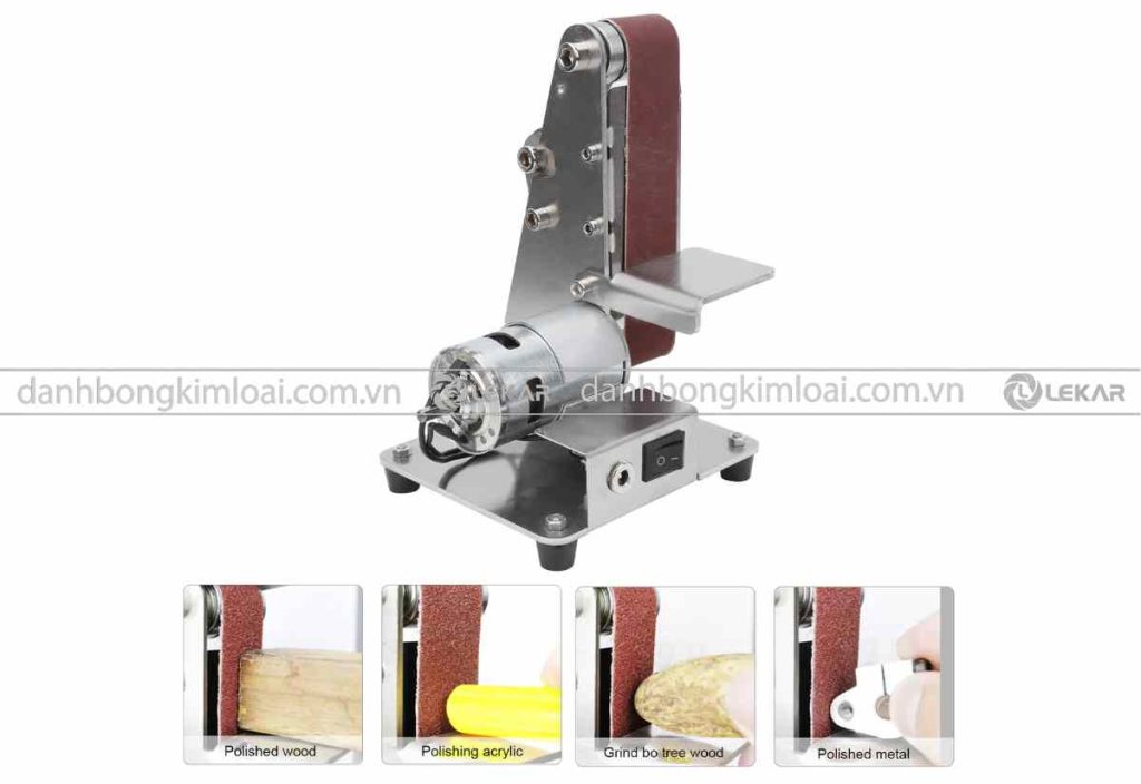 Do cấu tạo có 2 hoặc 3 trục kết hợp với bộ khung chắc chắn. Máy mài dây đai nhám vòng là dạng máy mài cực kì thích hợp với những vật tư có sử dụng lỗ trục cụ thể như sau: