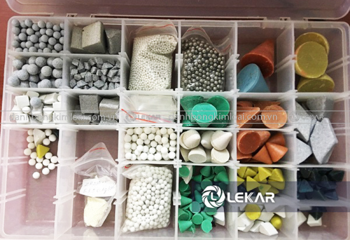 Vật tư đa dạng: đá mài, bi thép, dung dịch tẩy rửa, dung dịch đánh bóng.