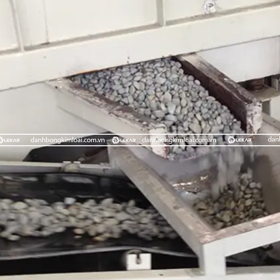 Sau khi qua quá trình rung, phôi và vật tư mài được đưa đến máy sàng phân tách. Tại đây, máy sàng phân tách sẽ phân loại phôi và vật tư mài thành hai luồng riêng biệt. Phôi được đi ra ngoài để chuẩn bị cho quá trình tiếp theo, trong khi vật tư mài được đưa lại vào quy trình đánh bóng.