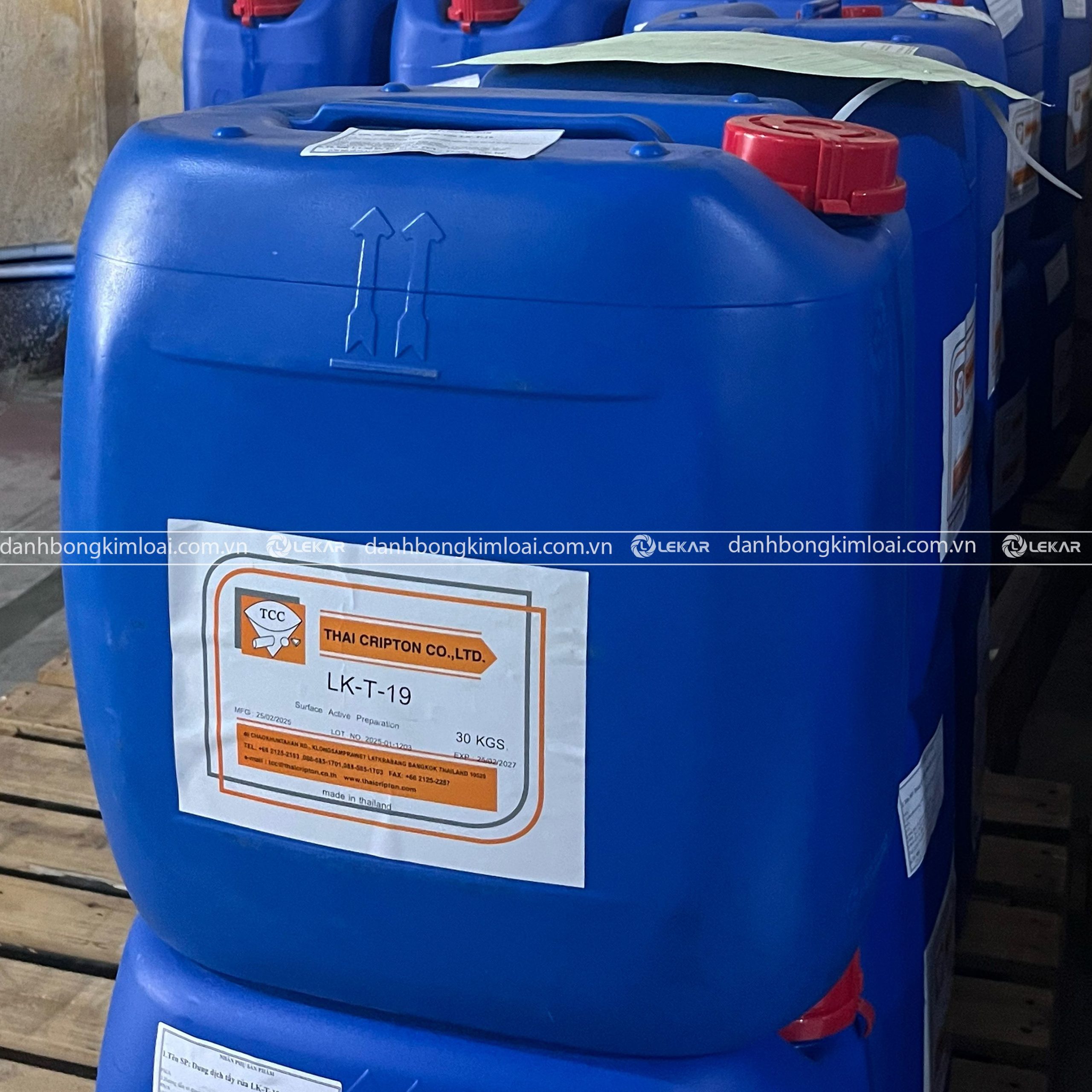 Dung dịch tẩy rửa LK-T-19 là chất tẩy phù hợp với mọi chất liệu kim loại, tẩy rửa, tẩy dầu tốt, độ bóng cao.