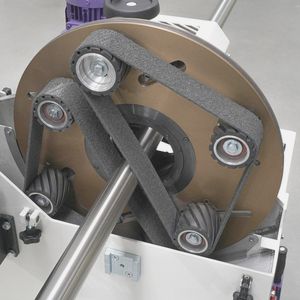 Máy có thể kết hợp được với tất cả các loại vật liệu nhám vòng mài mòn có sẵn, để đánh bóng tất cả các kim loại Inox, thép, đồng, nhôm, hợp kim thép cứng, …
