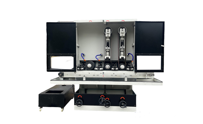 Máy này chủ yếu dùng trong khâu xử lý mài nhẵn, xước mờ (hairline) hoặc đánh bóng các phụ kiện có bề mặt dạng tấm phẳng hay dạng thanh, hộp.