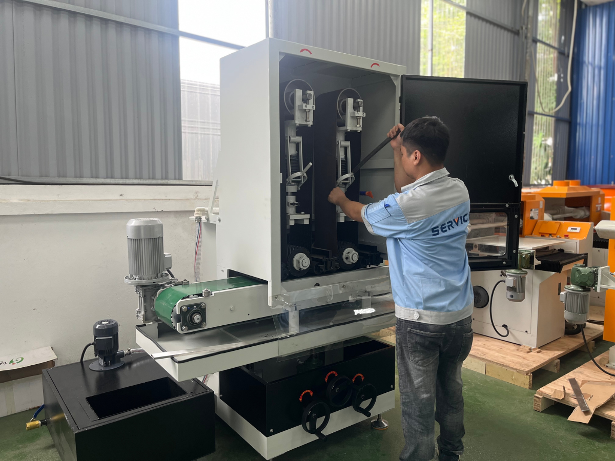 Máy đánh xước mặt phẳng 2 tổ mài đai.