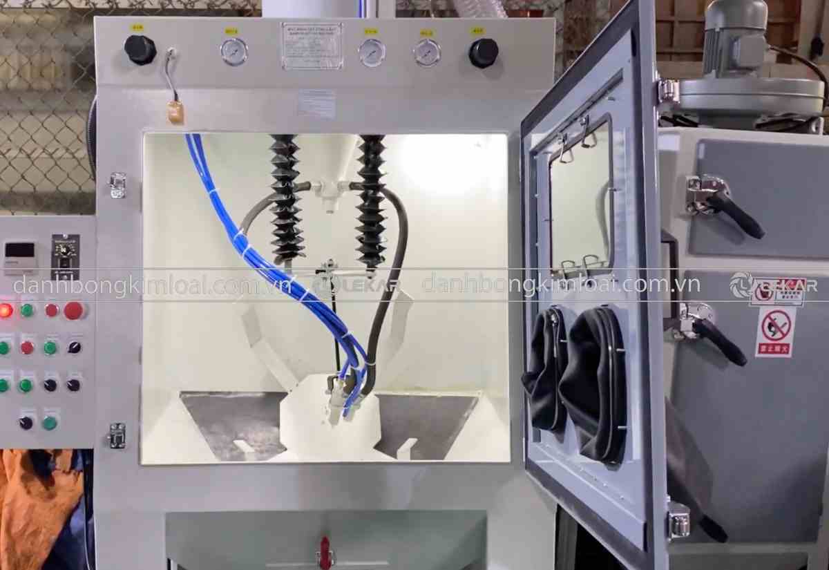 Ngoài làm sạch, máy phun cát còn hỗ trợ đánh bóng bề mặt, giúp sản phẩm đạt độ sáng mịn và tính thẩm mỹ cao, đặc biệt trong ngành inox và trang trí kim loại.